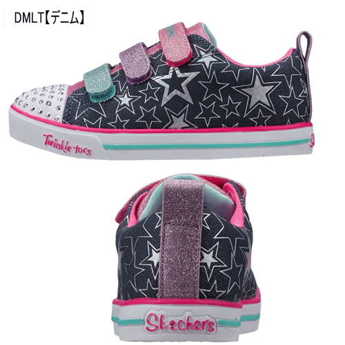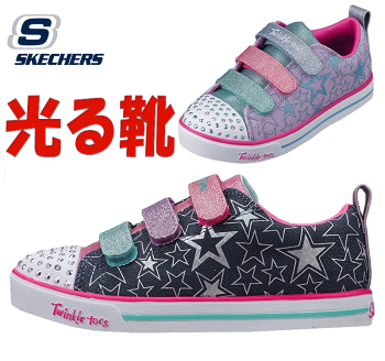 光る靴 スケッチャーズ スパークルライト SKECHERS 314036L キッズ ジュニア スニーカー 靴 LED フラッシュスニーカー ネイビー シルバー ピンク 通園 普段履き 女の子 ラメ紐 マジック 星柄 プレゼント クリスマス かわいい おしゃれ DMLT LVMT 17cm 18cm 19cm