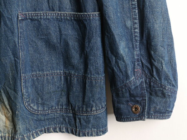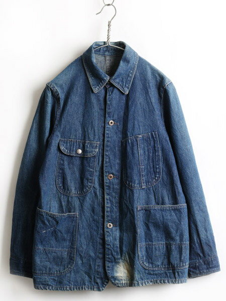 40's ビンテージ ★大戦モデル 月桂樹ボタン ガチャポケ デニム カバーオール ( 男性 メンズ M 36 程) 古着 40年代 デニム ジャケット 濃紺| 【USA古着】【古着】中古 ジャンパー ブルゾン 4ポケット ドーナツボタン デニムジャケット 大戦 ヴィンテージ アメカジ コート