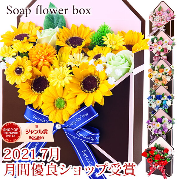 お花の入ったレターケースごと飾れるソープフラワーアレンジメント 商品説明 ソープフラワーは石鹸で作られているお花、本物のお花と見間違えるほどリアルに作られていて、お値段の割に豪華です。